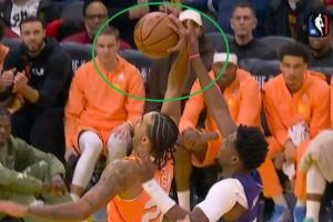 因此,米勒這次純打手等于純打球,裁判起初吹罰了米勒打手犯規,黃蜂挑戰成功!