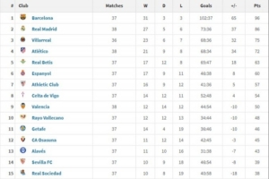 體育資訊12月23日訊 2025年度至今,巴薩在少賽一場的情況下取得31勝3平3負積96分位列西甲榜首,皇馬以27勝5平6負積86分排名第二,排名第三和第四的分別是比利亞雷亞爾和馬競。