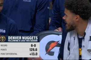今日掘金135-112大勝爵士。至此,本賽季掘金在輸球后的第二場比賽中戰績為6勝0負,場均轟下129.6分,場均凈勝13分。