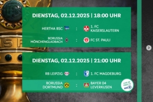 體育資訊11月6日訊 德國杯1/8決賽各場開球時間公布,12月3日4點勒沃庫森vs多特蒙德,4日3點45柏林聯合vs拜仁。