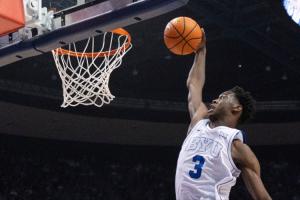 此役,2026年?duì)钤獰衢T、楊百翰大學(xué)前鋒迪班薩出場36分鐘13投11中,三分3中2、罰球11中9,砍下33分10籃板10助攻2搶斷。
