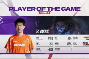 體育資訊12月23日訊 Haichao憑借塞拉斯多次R偷到石頭人大招,首局砍下11/3/10豪華兩雙數據,拿下MVP!