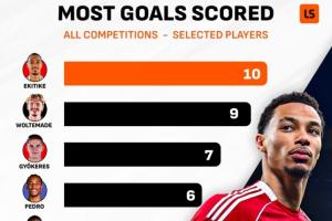 體育資訊12月23日訊 上周末英超第17輪比賽結束,英國媒體LiverScore列出了本賽季英超部分新援前鋒的進球數,埃基蒂克打入10球排名第一。