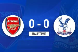 上半場補時2分鐘。半場戰罷,阿森納0-0水晶宮。