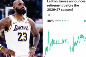 體育資訊12月24日訊 據(jù)美媒Kalshi Sports預(yù)測(cè),最新消息顯示,勒布朗·詹姆斯有46%的可能性在下個(gè)賽季開始前宣布退役。他是否會(huì)不進(jìn)行告別巡演就直接退役呢?