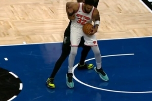 GIF-森林狼挑戰(zhàn)成功!唐斯投籃犯規(guī)改判先夾手臂進(jìn)攻犯規(guī)