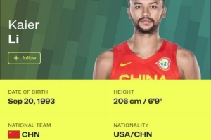 中國男籃首位歸化球員!NBA官網顯示:李凱爾的國籍為美國籍