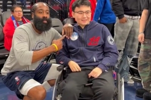 之后,哈登還曾邀請約翰·郝到76人主場看比賽。在隨后的采訪中,哈登的發(fā)言更讓人動容:“約翰·郝是我的幸運(yùn)符,我們一直保持聯(lián)系,我覺得我有責(zé)任在他生命中給予一點(diǎn)光明?!?/p>