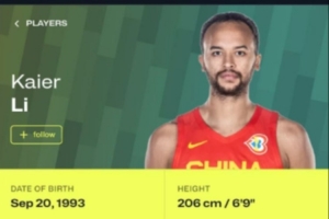 國際籃聯(lián)資料顯示 李凱爾所屬國家隊為中國男籃