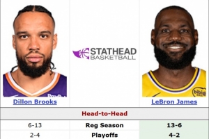 據統計,這是詹姆斯和狄龍生涯第20次交手,詹姆斯13勝7負,狄龍7勝13負;季后賽詹姆斯4勝2負。
