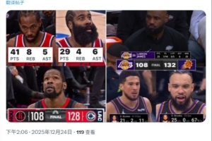 體育資訊12月24日訊 NBA常規賽,火箭108-128慘敗快船,太陽132-108大勝湖人。