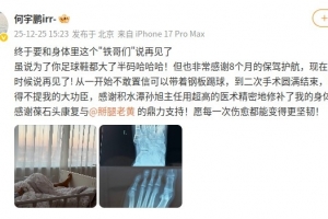 何宇鵬在社媒寫道:“終于要和身體里這個‘鐵哥們’說再見了,雖說為了你足球鞋都大了半碼哈哈哈!但也非常感謝8個月的保駕護航,現在,是時候說再見了!”