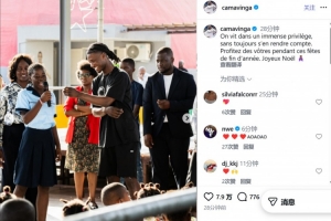 卡馬文加在當地受到了熱烈歡迎,他曬出了自己的照片,寫道:“我們生活在極大的特權之中,卻并不總能意識到這一點。請在這些歲末佳節里,好好陪伴你們的親人。圣誕快樂 ????”