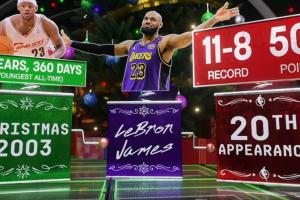 轉播方ESPN曬出數據:詹姆斯2003年參加圣誕大戰時18歲360天,歷史最年輕。