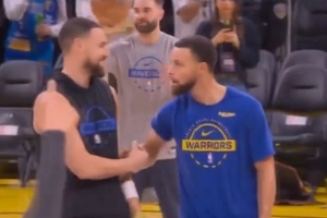 庫(kù)里:“他通常都在差不多的時(shí)間熱身,所以我知道他大概也會(huì)出來(lái)。我們?cè)诎雸?chǎng)有過(guò)一次短暫的互動(dòng)。”