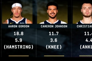 注:戈登腘繩肌受傷 場均18.8分5.9籃板