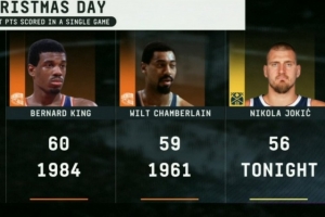 本場,約基奇出戰43分鐘,投籃21中15,三分6中4,罰球23中22,砍下56分16籃板15助攻2蓋帽,正負值+15!