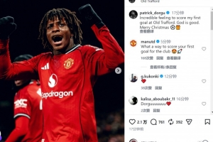 多爾古社媒曬出慶祝進球的照片,配文:“在老特拉福德打入首球的感覺不可思議。上帝眷顧,圣誕快樂。”