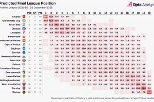 Opta超算最新英超奪冠概率: