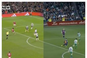 比賽第28分鐘,就在多爾古破門后不到5分鐘,曼聯(lián)尋得一次反擊機會,多爾古在大禁區(qū)左側(cè)直接起腳吊射遠門柱,但被門將沒收。這球的位置與梅西當年對陣貝蒂斯的吊射極為相似。