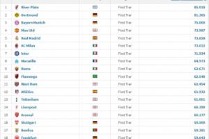 前30球隊如下: