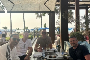 照片中費迪南德、范佩西、維迪奇等人正在用餐,費迪南德配文寫道:午餐安排!!重聚 ??????范大將軍+維迪奇!!!