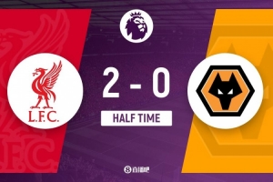 體育資訊12月27日訊 北京時間12月27日23:00,英超聯賽第18輪利物浦迎戰狼隊的比賽在安菲爾德球場進行,上半場?;倏硕瞪渲兄?,麥卡利斯特抽射中柱,弗林蓬助攻赫拉芬貝赫抽射破門,?;倏酥ゾS爾茨打進紅軍首球,半場結束,利物浦2-0狼隊。