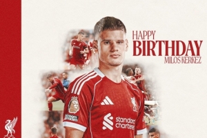 利物浦官方社媒曬出為凱爾凱茲制作的生日海報,配文:“祝你度過美好的一天,米洛斯?!?/p>