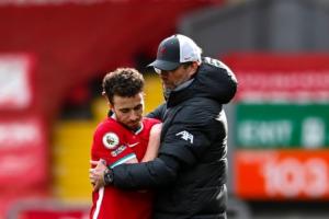 這在我執教俱樂部的整個時期,甚至在我離開后,都一直持續著。在最重大的時刻,當我們最需要他的時候,他一次又一次地挺身而出。 今年四月,我在客廳里慶祝了他對陣埃弗頓的制勝球,但我歡呼的樣子就像我是Kop看臺上的一個支持者。一個決定冠軍歸屬的時刻。如今,這已成為一個不朽的時刻,與俱樂部輝煌歷史上一些最重要的時刻并列。 我總是說:作為一名進攻球員,你也必須在防守端努力,而迪奧戈在這方面做得令人難以置信地好。他追逐一切。他為每個球權而戰。他瘋狂地壓迫逼搶。然后下一秒,他就會給你一個微笑,或是一次握手,或在走廊里開個小玩笑。