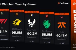 體育資訊12月28日訊?Esports Charts統計2025年各游戲項目觀看量最高的電競戰隊: