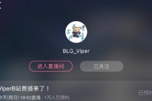 體育資訊12月28日訊 B站預(yù)告Viper直播首秀:已有1萬(wàn)人預(yù)約。
