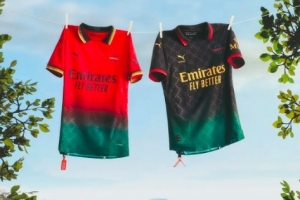 Off-White(美國潮牌)首次涉足球場,自然引起了廣泛關注。繼與米蘭俱樂部場外合作后,這款(實際上是兩款)球衣應運而生,將品牌的時尚大膽和精致風格直接帶到了綠茵場上。更重要的是,這款球衣傳遞了一個信息,正如與紅黑軍團合作的哲學一樣:以1963年為靈感的“夢想之地”概念,既包含了體育意義(米蘭在那一年贏得了他們的第一座歐洲冠軍杯),也涵蓋了文化意義,即馬丁·路德·金關于社會平等的演講。使用泛非旗幟的顏色成為這款球衣的一個重要身份特征。