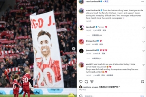 若塔的遺孀魯特爾也在賽后通過社媒曬出現場照表示感謝:“我由衷感謝俱樂部和所有球迷在這段無比艱難的時期所展現出的愛、尊重和支持。你們的留言以及行動讓我感動到難以用言語表達??”。