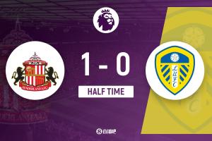 半場結束,桑德蘭1-0利茲聯。