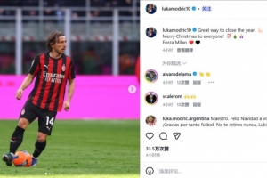莫德里奇寫道:“以最好的方式結束這一年,大家圣誕快樂,Forza Milan ????”