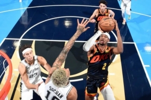 所以雖然雙塔組合夠強,但兩人相對單一的功能,讓對方的內線球員能夠更專注于同樣較為單一的工作內容,把大部分防守注意力都集中在SGA等人的持球強攻上。