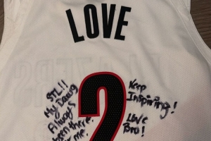 樂福在球衣上面寫著:“圣路易斯!我的兄弟,一直都支持著我,希望你繼續(xù)激勵大家!家鄉(xiāng)英雄!”