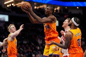 本賽季,迪亞巴特場(chǎng)均出場(chǎng)22.7分鐘,可以拿到8分8.1籃板(3.7個(gè)前場(chǎng)板)