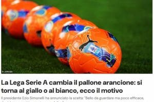 意甲聯(lián)盟被迫更換從聯(lián)賽第12輪起使用的、曾引發(fā)討論的熒光橙色足球,這一更換將在2026年初及下半賽季開始之際進(jìn)行,但不會(huì)立即實(shí)施,該決定是在眾多色盲球迷投訴無法在球場(chǎng)中辨識(shí)足球后作出的。