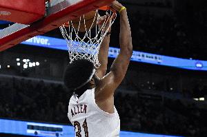 本場比賽,騎士內線阿倫表現出色,面對文班亞馬絲毫不落下風,在28分鐘的時間里,投籃21中11,三分球1中0,罰球7中5,拿下27分10籃板2搶斷的數據,正負值+9。