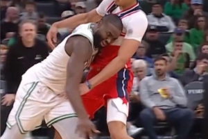 體育資訊11月7日訊 此前杰倫·布朗多次在比賽中將發際線粉蹭到對手球衣上。