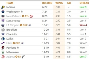 7連敗之后,老鷹戰(zhàn)績(jī)15勝19負(fù),聯(lián)盟倒數(shù)第12位。而馬刺明年有權(quán)和他們互換首輪簽。