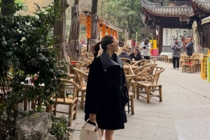 照片中,谷愛凌一襲黑衣在燈籠垂懸的青石板巷弄里信步而行,谷愛凌社媒寫道:“成都?? ???”