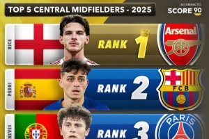 以下是2025年最佳中場前五榜單: