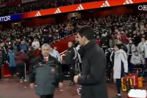 賽后,槍手主帥阿爾特塔先是和助教擊掌相慶,但隨后他環(huán)顧對面一圈,先后回了幾次頭都沒看到維拉主帥埃梅里來握手,只好跳過這個環(huán)節(jié)進場恭喜自家球員。