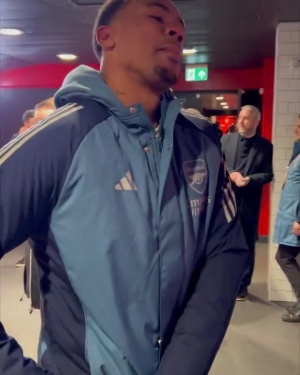 賽后槍手官推曬出的球員通道視角,多名球員激情慶祝,厄德高和拉亞怒吼,斯凱利向鏡頭擺出了“3”的手勢,而本場為槍手先拔頭籌的加布里埃爾更是開心地做出了“穩穩落袋”的慶祝動作。