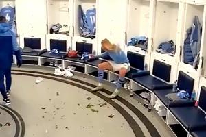 體育資訊12月31日訊 曼城官推曬視頻,更衣室里哈蘭德暴怒披頭散發砸水瓶,瓶子反彈正好彈進垃圾桶。