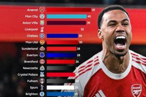 優勢較大3隊:阿森納45分、曼城40分、維拉39分