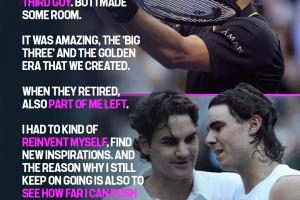 “當費德勒和納達爾退役時我覺得我也失去了一部分的自我。所以我不得不重塑自己,尋找新的驅動力。而我之所以堅持下去,也是想看看自己能達到什么樣的高度。”
