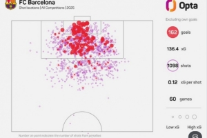 體育資訊12月31日訊 據(jù)數(shù)據(jù)網(wǎng)站OPTA統(tǒng)計(jì),巴薩在2025年60場(chǎng)各項(xiàng)賽事共計(jì)打進(jìn)169粒進(jìn)球(包括烏龍球)。